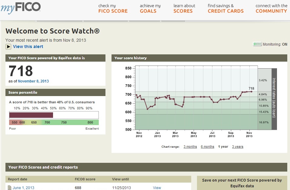 MyFICO is the consumer service division of FICO, the company that builds the eponymous credit scoring models. They offer a few credit score-related services, and I have had a chance to try out most of them. The one I find the most valuable and have been using for a year is a credit score monitoring service called Score Watch.